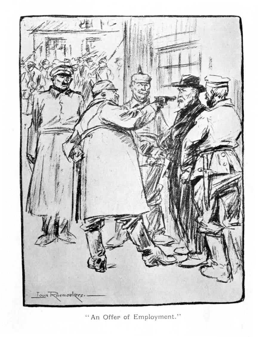 It was scarcely necessary to underline some passages of this report. However bad may be the impression it causes, it would be twenty-six times worse if we had the leisure to follow step by step the progress of German economic policy in Belgium. It is evident that the German administration, in spite of its former declarations, is resolved to ruin Belgian industry and to throw out of work the greatest number of men possible. All raw material must go to Germany in order to be worked there. As it has become evident that the Belgian workers will not submit to war work so long as they remain in their surroundings, they must be torn away from their country and compelled to follow the materials and machines over the frontier. Labour has become an inanimated object necessary to the prosecution of the German war. It is as indispensable to Germany as cotton, nickel and copper. It will be treated as such. If the men resist, they will be crushed. If the soul of Belgium will not yield to persuasion, it will be taken away from her, like her cattle, her corn, her iron and her steel. And so Belgium will become a weapon in Germany's hands, a weapon which will strike at Belgium. And the only thought of the deported worker turning a shell in a German factory will be, as is suggested by Louis Raemaekers' cartoon, "Perhaps this one will kill my own son?"