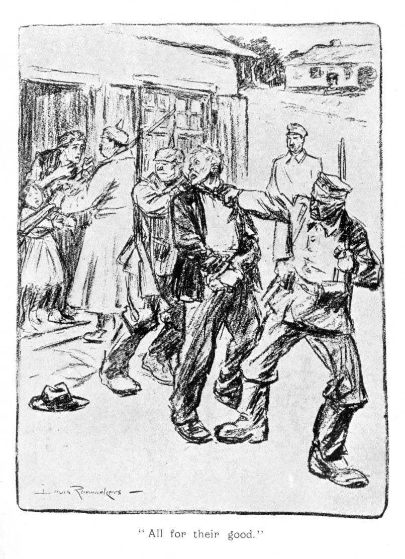 I feel confident that some day a poet will be able to sing this great epic in verses which shall answer to the swinging rhythm of battle and roll with the booming of a thousand guns. But, in the meantime, I should like to say a few words about a much humbler, a much simpler, a much more familiar subject. It awakes no classical remembrances of Leonidas or Marathon. My heroes risk their lives, but they are not soldiers, merely prosaic "bourgeois" and workmen. They have no weapon, they cannot fight. They have only to remain cheery in adversity and patient in the face of taunts. They cannot render blow for blow, they have no sword to flourish against an insolent conqueror. They can only oppose a stout heart, a loyal spirit, and an ironic smile to the persecutions to which they are subjected. They can do nothing—they must do nothing—only hope and wait. But there are as much heroism and beauty in their black frock-coats and their soiled workmen's smocks as in the gayest and most glittering uniforms.