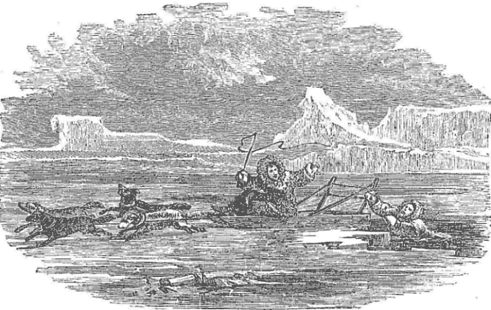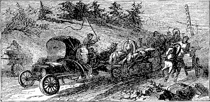 Night came upon us soon after passing the first station. The road was a combination of pitch-holes, water, soft snow, and detours to avoid dangerous places. The most unpleasant drives were when we left the river to change horses at the villages on the high bank. It was well enough going up, but in descending the sleigh sometimes endeavored to go ahead of the horses. Once we came near going over a perpendicular bank sixty or eighty feet high. Had we done so, our establishment would have not been worth fifty cents a bushel at the bottom of the bank.