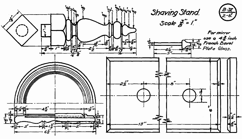 The related matter on the care of the lathe and tools, the grinding of chisels, the polishing of projects, and the specific directions and cautions for working out the various exercises and projects with the drawings, make the book not only valuable for reference, but also as a class text to be studied in connection with the making of projects. The drawings show exact dimensions and are tabulated in the upper right-hand corner in such a way that they may be used in a filing case if desired. At least two designs are shown for each model, and these may be used as suggestions from which students, with the aid of the instructor, may work out their own designs.