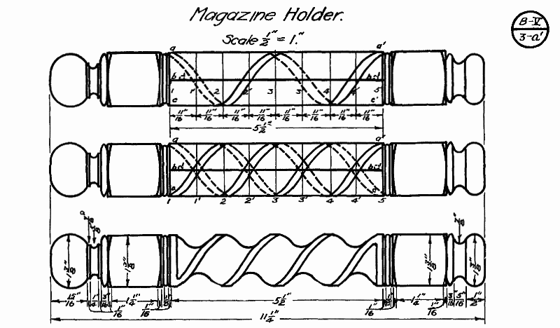 Part B is arranged as follows: (I) Exercises; (II) Models, which are an application of cuts in exercises that involve only face-plate work; (III) Models, which require chucking; (IV) Assembling Exercises, involving spindle turning, face-plate work and chucking; (V) Spiral Turning, showing the method of turning a spiral on the lathe.