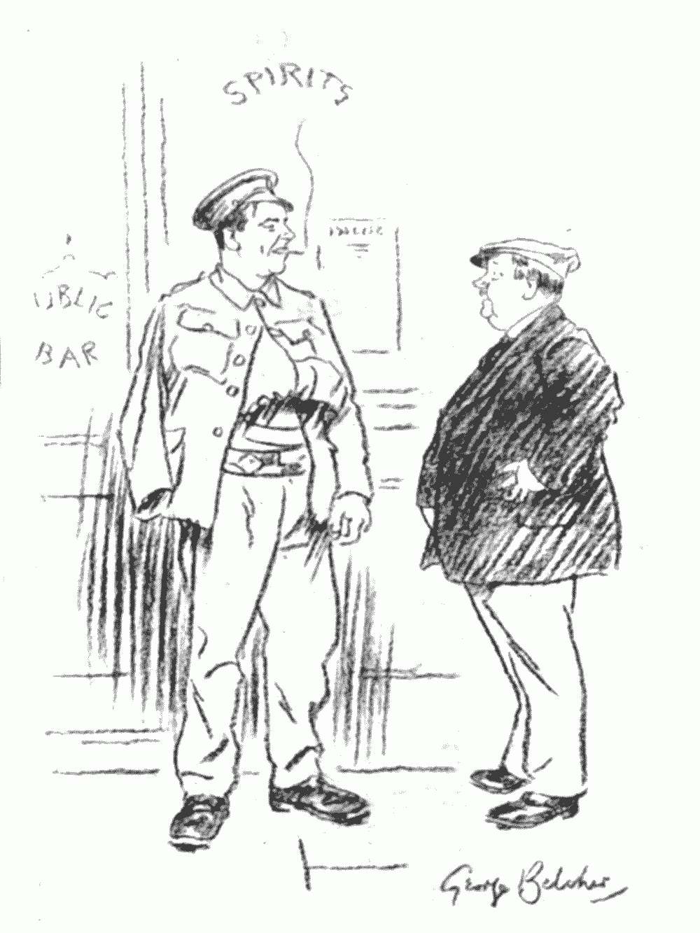 We get plenty of encouragement; indeed we feel that the authorities have a special eye upon us. To give an example. We paraded the other night and were inspected by a General—tut-tut, a couple of Generals. One of them addressed us afterwards and gave us to understand that, having seen the flower of the Continental armies at work, he was, even so, hardly prepared for the extraordinary—and so on; which made James throw out his lower chest a couple of inches further than usual. Whereupon the Admiralty airship hurried up and, flying slowly over us, inspected us from the top. I say nothing of what James must have looked like from the top; what I say is that not many battalions are inspected by two Generals and an airship simultaneously. We are grateful to the authorities.