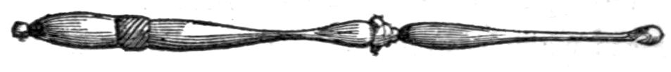 The records of history inform us of the high antiquity of the art of needlework; and its beautiful mysteries were amongst the earliest developments of female taste and ingenuity. As civilization increased, new wants called forth new exertions; the loom poured forth its multifarious materials, and the needle, with its accompanying implements, gave form and utility to the fabrics submitted to its operations. No one can look upon THE NEEDLE, without emotion; it is a constant companion throughout the pilgrimage of life. We find it the first instrument of use placed in the hand of budding childhood, and it is found to retain its usefulness and charm, even when trembling in the grasp of fast declining age. The little girl first employs it in the dressing of her doll: then she is taught its still higher use, in making up some necessary articles for a beloved brother, or a revered parent. Approaching to womanhood, additional preparations of articles of use, as ornaments of herself and others, call for its daily employment; and with what tender emotions does the glittering steel inspire the bosom, as beneath its magic touch, that which is to deck a lover[vii] or adorn a bride, becomes visible in the charming productions of female skill and fond regard. To the adornments of the bridal bed, the numerous preparations for an anxiously-expected little stranger, and the various comforts and conveniences of life, the service of this little instrument is indispensible. Often too is it found aiding in the preparation of gifts of friendship, the effects of benevolence, and the works of charity. Many of those articles, which minister so essentially to the solace of the afflicted, would be unknown without it; and its friendly aid does not desert us, even in the dark hour of sorrow and affliction. By its aid, we form the last covering which is to enwrap the body of a departed loved one, and prepare those sable habiliments, which custom has adopted as the external signs of mourning.