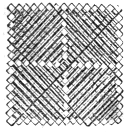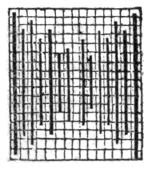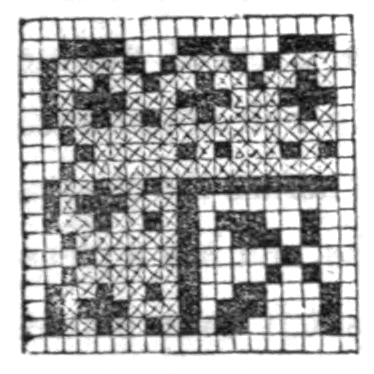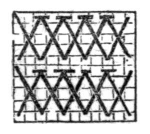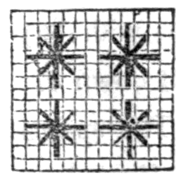 Canvas (very coarse) ten threads to the inch. Work in cross stitch, over one thread, with single wool. If used for grounding, work in two threads. This will accelerate the work, and look equally well.