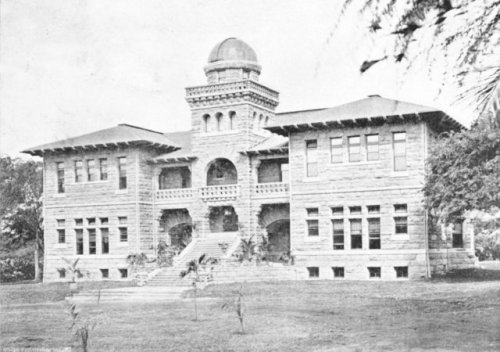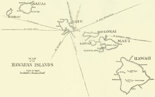 On Oahu is the capital, Honolulu. It is a city numbering thirty thousand inhabitants and is pleasantly situated on the south side of the Island. The city extends a considerable distance up Nuuanu Valley and has wings extending northwest and southeast. It is a city of foliage. Except in the business blocks, every house stands in its own garden, and some of the houses are wonderfully beautiful.