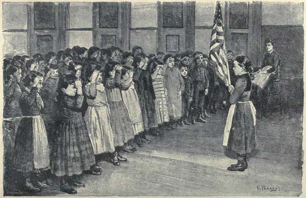 The immediate duty which the community has to perform for its own protection is to school the children first of all into good Americans, and next into useful citizens. As a community it has not attended to this duty as it should; but private effort has stepped in and is making up for its neglect with encouraging success. The outlook that was gloomy from the point of view of the tenement, brightens when seen from this angle, however toilsome the road yet ahead. The inpouring of alien races no longer darkens it. The problems that seemed so perplexing in the light of freshly-formed prejudices against this or that immigrant, yield to this simple solution that discovers all alarm to have been groundless. Yesterday it was the swarthy Italian, to-day the Russian Jew, that excited our distrust. To-morrow it may be the Arab or the Greek. All alike they have taken, or are taking, their places in the ranks of our social phalanx, pushing upward from the bottom with steady effort, as I believe they will continue to do unless failure to provide them with proper homes arrests the process. And in the general advance the children, thus firmly grasped, are seen to be a powerful moving force. The one immigrant who does not keep step, who, having[Pg 9] fallen out of the ranks, has been ordered to the rear, is the Chinaman, who brought neither wife nor children to push him ahead. He left them behind that he might not become an American, and by the standard he himself set up he has been judged.