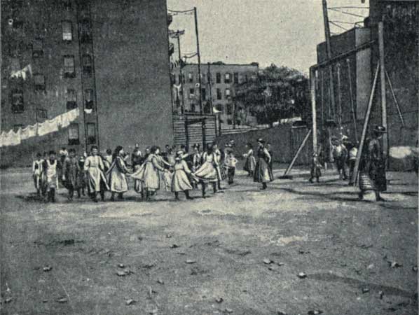 The problem of the children is the problem of the State. As we mould the children of the toiling masses in our cities, so we shape the destiny of the State which they will rule in their turn, taking the reins from our hands. In proportion as we neglect or pass them by, the blame for bad government to come rests upon us. The cities long since held the balance of power; their dominion will be absolute soon unless the near future finds some way of scattering the population which the era of steam-power and industrial development has crowded together in the great centres of that energy. At the beginning of the century the urban population of the United States was 3.97 per cent. of the whole, or not quite one in twenty-five. To-day it is 29.12 per cent., or nearly one in three. In the lifetime of those who were babies in arms when the first gun was fired upon Fort Sumter it has all but doubled. A million and a quarter live to-day in the tenements of the American metropolis. Clearly, there is reason for the sharp attention given at last to the life and the doings of the other half, too long unconsidered.[Pg 2] Philanthropy we call it sometimes with patronizing airs. Better call it self-defence.
