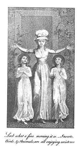 The odd thing is that every one was equally thoughtless: it is not merely that Mary Wollstonecraft should consider such an intellectual stone as Chapter XV worth preparing for poor little fellow creatures that needed bread; but that her publisher Johnson should consider it the kind of thing to send forth, and that, with artists capable of dramatic interest available, he should hand the commission to illustrate it to William Blake, who, exquisitely charming as were his drawings for his own Songs, was as yet in no sense of the word an ingratiating illustrator of narratives of real life for young eyes. And there still remains the parent or friend who, picking up the book in a shop, considered it the kind of thing to strike a bliss into the soul of Master Henry or Miss Susan as a birthday present. p. ixIt is all, at this date, so incredible, so shortsighted, so cruel, one could almost say. No one seems to have tried at all: the idea of wooing a child was not in the air—certainly Mary Wollstonecraft had none of it.