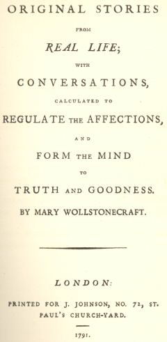 The germ of the Original Stories was, I imagine, a suggestion (in the manner of publishers) from Mary Wollstonecraft’s employer, Johnson of St. Paul’s Churchyard, that something more or less in the manner of Mrs. Trimmer’s History of the Robins, the great nursery success of 1786, might be a profitable speculation. For I doubt if the production of a book for children would ever have occurred spontaneously to an author so much more interested in the status of women and other adult matters. However, the idea being given her, she quickly wrote the book—in 1787 or 1788—carrying out in it to a far higher power, in Mrs. Mason, the self-confidence and rectitude of Mrs. Trimmer’s leading lady, Mrs. Benson, who in her turn had been preceded by that other flawless instructor of youth, Mr. Barlow. None of these exemplars could do wrong; but the Mrs. Mason whom we meet in the following pages far transcends the others in conscious merit. Mrs. Benson in the History of the Robins (with the author of which Mary Wollstonecraft was on friendly terms) was sufficiently like the Protagonist of the Old Testament to be, when among Mrs. Wilson’s bees, ‘excessively pleased with the ingenuity and industry p. ivwith which these insects collect their honey and wax, form their cells, and deposit their store’; but Mrs. Mason, as we shall see, went still farther.
