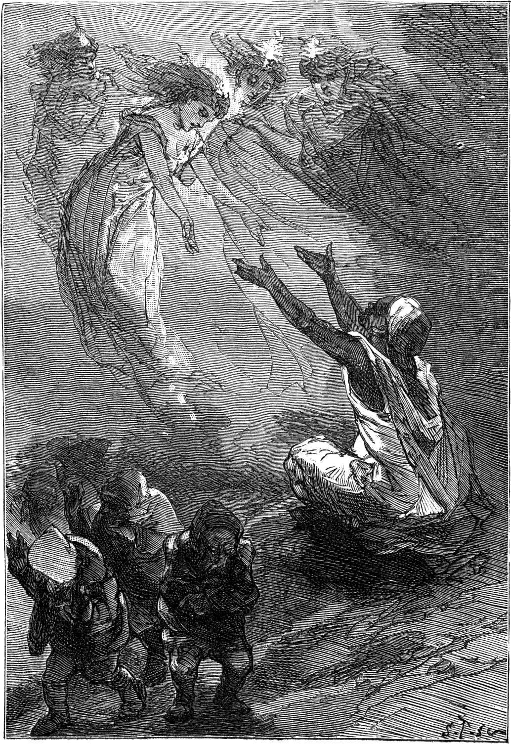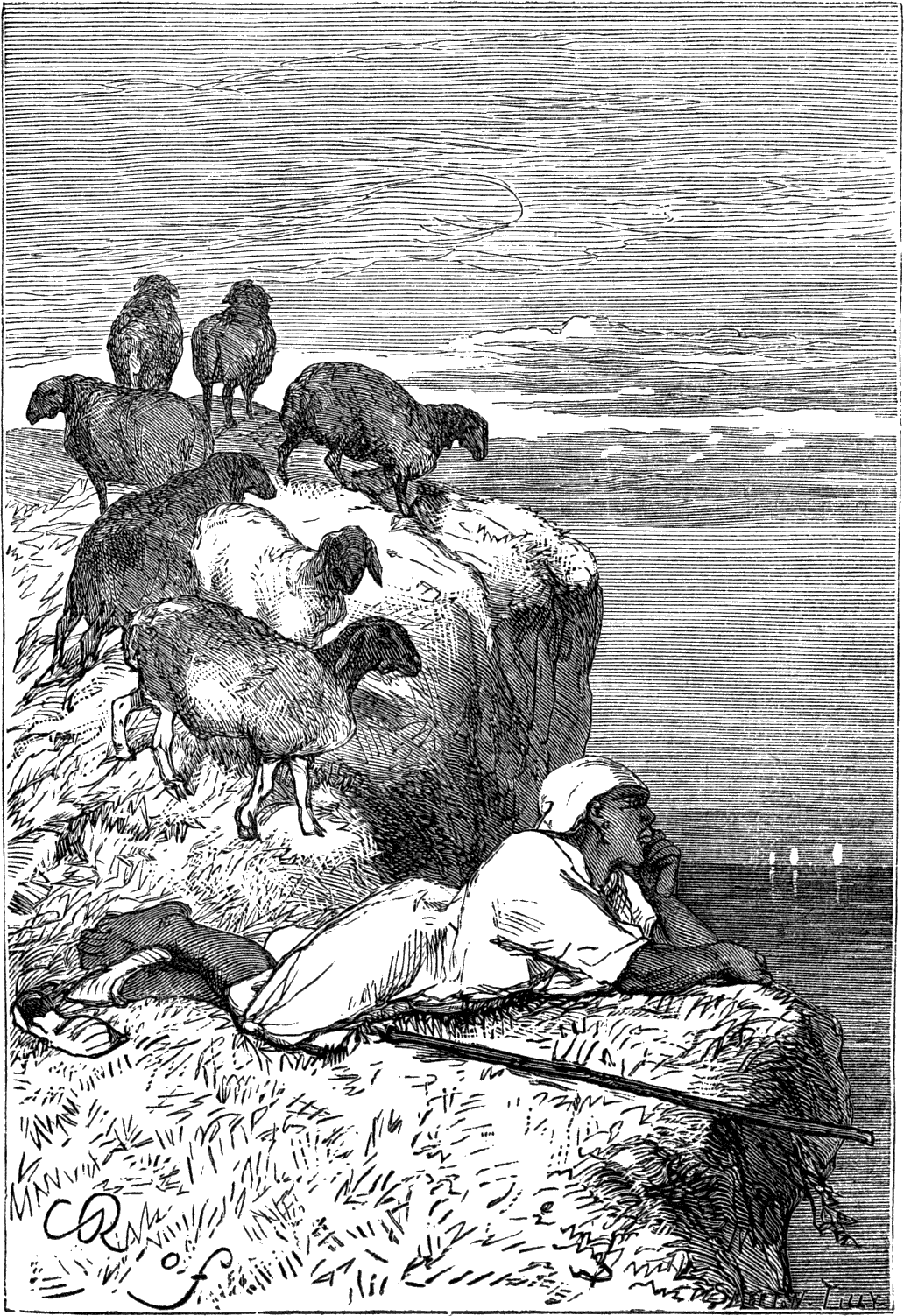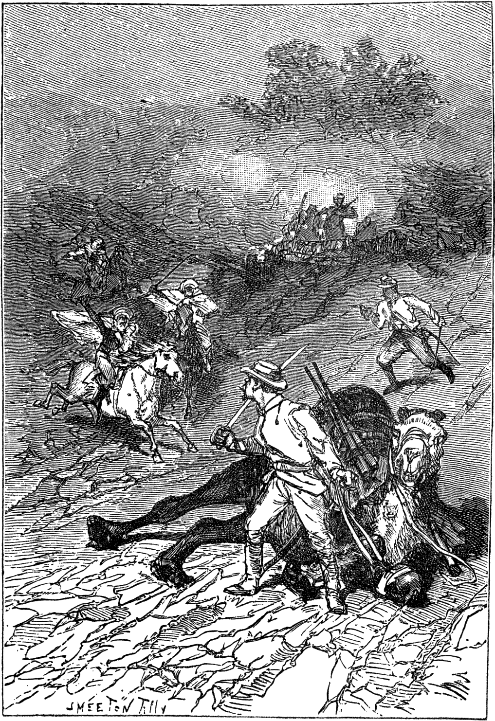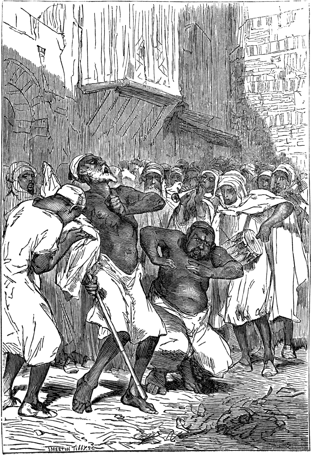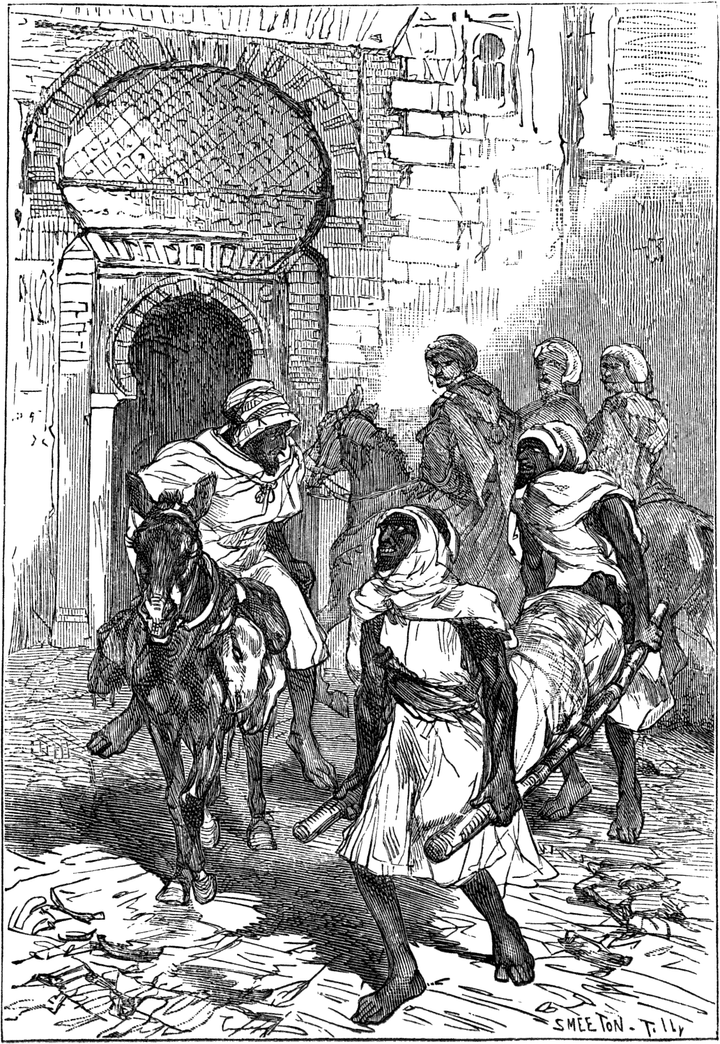 Inderdaad verscheen op het strand een troep havelooze kerels, die half naakt waren. Daar waren donker bruine Arabieren met zwarte baarden, taankleurige Mooren, en negers in de verschillende tinten van bruin tot gitzwart. De geheele troep stond op het strand de aankomst der boot af te wachten om als gids of pakkendrager een kleinigheid te verdienen.
