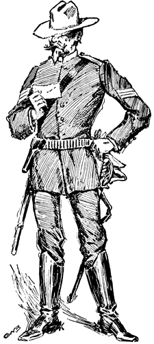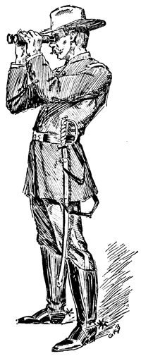 And then he would face about and stride away with his head very high in the air and his eyes blinking[32] hard, and almost immediately his voice would be heard sternly berating some trooper whose horse had tangled himself in his lariat, or whose "kit" was not stowed in proper shape about the saddle. It was his way of striving to hide the joy those messages brought him, and the men were quick to see through it all, and little "Reddy" Mulligan, reprimanded for the third time within a fort-night, started a laugh all through the bivouac by his whimsical protest: