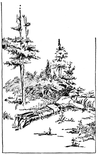 The sun was just rising above the low treeless ridges on the horizon as the lieutenant stood erect[52] and looked about him. Close at hand the Niobrara—"the Running Water"—was brawling over its stony shallows, and the smoke of tiny cook-fires was floating upward into the keen, crisp, morning air. Northward the slopes were bare and treeless, too, but closely carpeted with the dense growth of buffalo grass. Only a few yards out from the bivouac, hoppled and sidelined, the troop horses were cropping the still juicy herbage, and three or four soldiers, carbine in hand and garbed in their light-blue overcoats, were posted well out beyond the herd on every side, watching the valley far and near for any signs of Indian coming. Below the bivouac, and further[53] from the Laramie road, was an old log hut, once used as a ranch and "bar" for thirsty souls traversing the well-worn way to the reservation; but the tide of travel had first shifted to the Sidney route, and then been stemmed entirely, so far as the line to or near the agencies was concerned, and the proprietor had taken himself and his fiery poison to better-paying fields. Far away to the southwest the blue cone of Laramie Peak stood boldly against the sky. Nearer at hand, though a day's ride away, old Rawhide Butte rose sturdily from the midst of surrounding prairie slopes. Upstream, among some sparse cottonwood, a bit of ruddy color among the branches[54] caught the lieutenant's quick eye. Some Indian brave, wrapped in his blanket, had been laid to rest there out of reach of the snarling coyotes, one of whom could be dimly discerned slinking away under the bank, just out of easy rifle range.