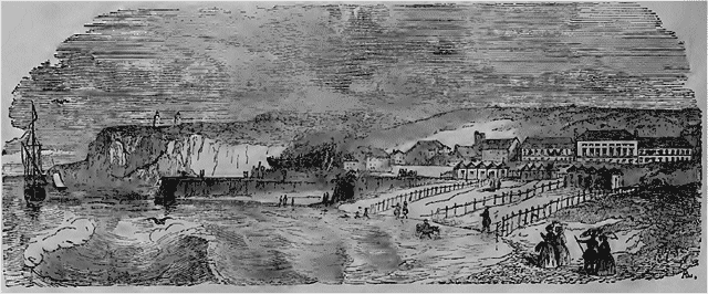 Le rival du Havre, quant aux bains, est Dieppe: l'établissement des bains de mer est un des plus beaux en ce genre qu'il y ait en France; il sc compose d'une grande galerie de 100 mètres de longueur. Au milieu est un arc ouvert; à chaque extrémité sont des pavillons élégants, renfermant des salons décemment meublés, à proximité desquels sont disposés des pontons ou escaliers en bois, qui offrent un accès facile sur le sable où sont disposées de nombreuses tentes: c'est là que l'on revêt le costume sacramentel. Ce costume est peu pittoresque par lui-même, et s'il est loin d'embellir les femmes qui n'ont pas à se plaindre d'avoir été disgraciées par la nature, en revanche il fait ressortir la laideur de certaines moins bien partagées, si toutefois il y a des femmes laides aux bains.