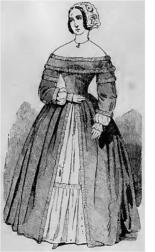 Le 16 du même mois, lady Sale célébra l'anniversaire de son mariage en dînant avec les femmes de la famille de Mohammed-Shah-Khan. «Ce fut, dit-elle, une corvée fort ennuyeuse. Deux femmes esclaves nous servaient d'interprètes. Ces dames avaient en général une disposition très-prononcée à l'embonpoint, des traits grossiers et des membres épais. Elles étaient vêtues d'une manière commune avec des étoffes fort ordinaires»--L'épouse favorite, qui avait la plus belle toilette, portait une robe de soie de Caboul d'une qualité inférieure, recouverte par derrière, sans doute par économie, d'un tablier de perse. Cette robe ressemblait à nos vêtements de nuit et était ornée çà et là de pièces de monnaie d'or et d'argent ou de morceaux des mêmes métaux découpés de diverses manières.