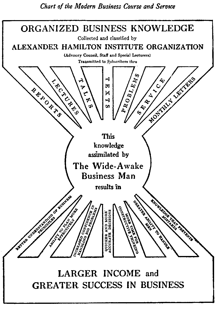 It became evident that there was a great need 10for an organized, logical statement of the basic principles on which successful business is founded. It was determined to establish an institution which should meet the demand. After years of preparation the Alexander Hamilton Institute was established in 1909.
