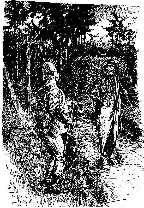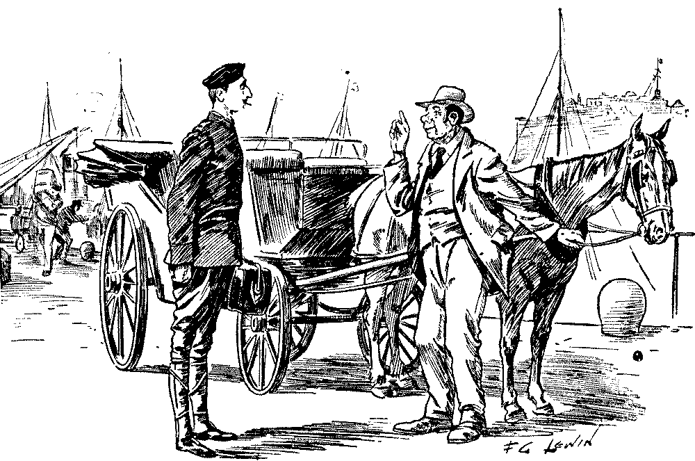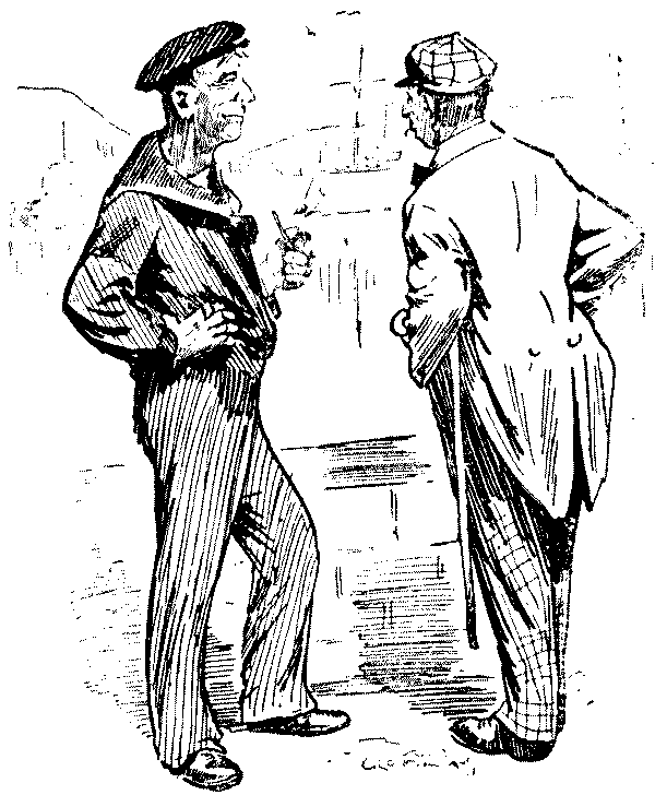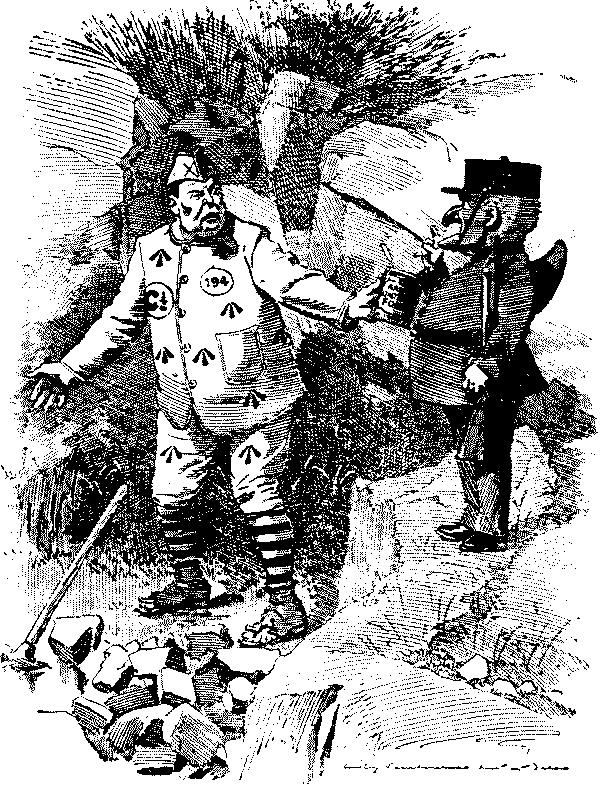 An Atkins ("back from the Front"). Ay, sir, and my companion here (indicating Atkins No. 2) he lost a leg.