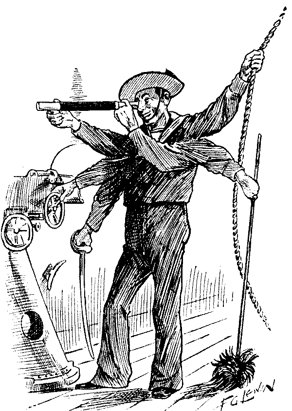 Was there ever protean like Mr. Punch! The little man is a wonder. In so many guises do we encounter him—now as tourist, again as playgoer, as huntsman, as artist, as bohemian, and equally as stay-at-home philistine, on the bench and on the golf-links, ashore and afloat, where not and how not?—that we need be in no wise surprised to find him on the warpath. Is he not the official jester of a warlike people?