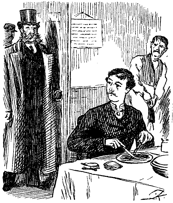 Messenger. Very sorry, sir, but that gentleman who has just entered the room is likely to be there for the next three hours. He came here two minutes before your arrival.