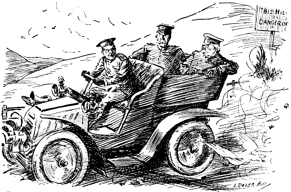 Fond Mother (reading letter from only son at the front). "Charlie says our Generals are perfect idiots!"