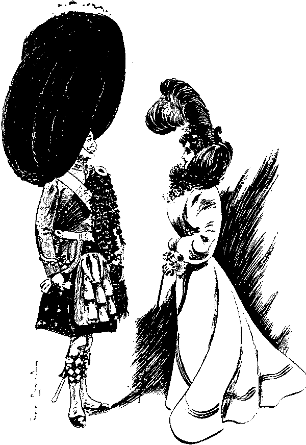 How to represent the Army.—Long skirt of gauzy material, parasol tied with tricolour ribands, silk blouse with epauletted sleeves and a Crimean medal pinned on to a bunch of flowers. High-heeled shoes. Regimental levée scarf worn over the left shoulder. Tiny cocked hat attached to the hair by two long pins and a small silk flag.