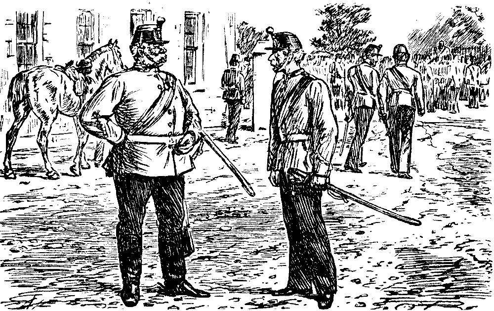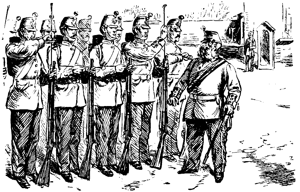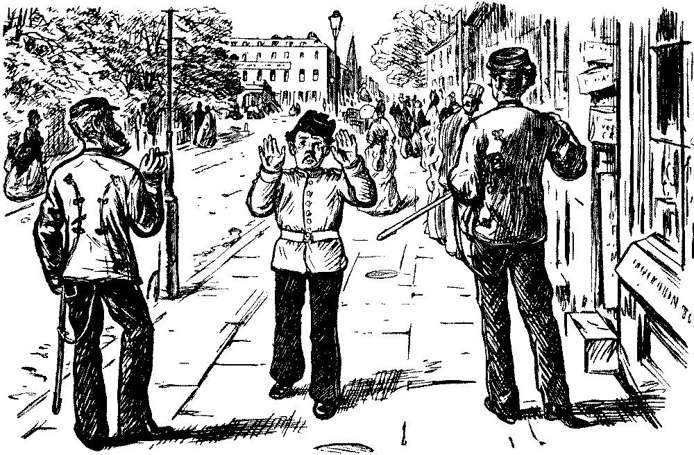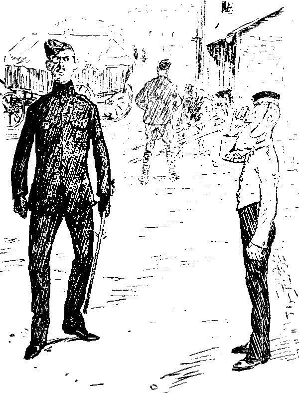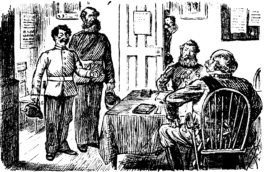 Officer. And yet he is admitted in mufti! Why, here have I had to come up from the country in full rig, being chaffed at the railway station, grinned at by the cabman, and cheered by the crowd!