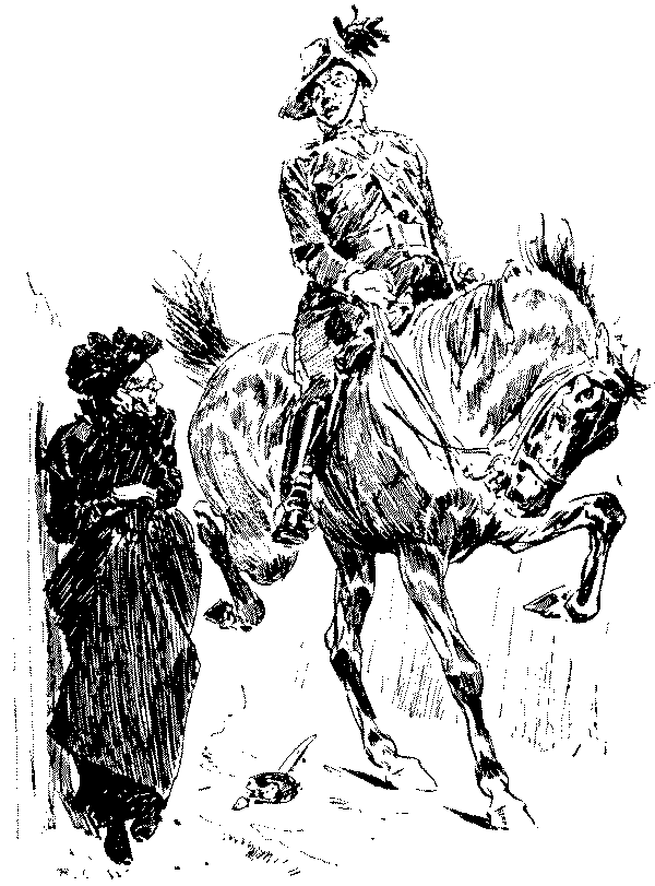 Scene—Pall Mall. Enter officer in full uniform hurriedly. He is stopped by messenger.