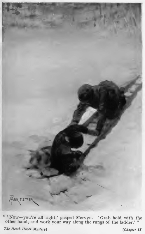 “Now—you’re all right,” gasped Mervyn. “Grab hold with the other hand, and work your way along the rungs of the ladder. Come on. Buck up.”