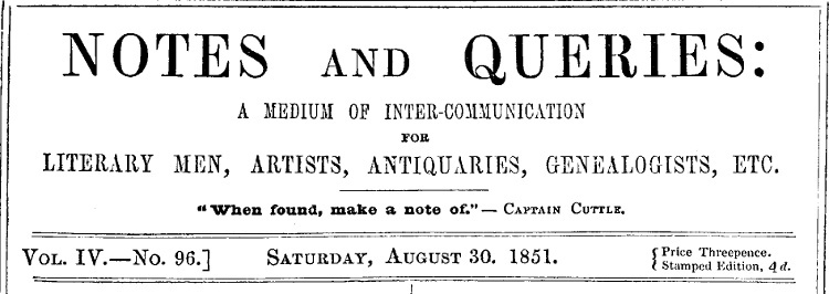 The Project Gutenberg EBook of Notes and Queries, Vol. IV, Number 96,