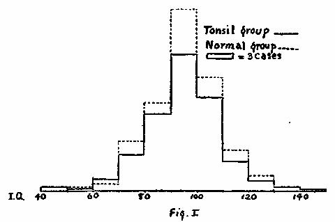 The method employed in the present experiment would seem to give it value from the point of view of the clinical psychologist. With the present emphasis upon exactitude in mental testing, investigators have become interested in problem[Pg 6] of the constancy of the I.Q. Adenoids and abnormal tonsils have been suggested as possible factors affecting this constancy. The results of the experiment should throw some light on the question.