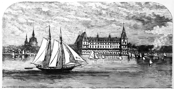 General View of Newport.—Sail up the Harbor.—Commercial Decadence.—Street Rambles.—William Coddington.—Anne Hutchinson.—The Wantons.—Newport Artillery.—State-house Notes.—Tristram Burgess.—Jewish Cemetery and Synagogue.—Judah Touro.—Redwood Library.—The Old Stone Mill.