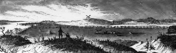 In the "Histoire Universelle des Indes Occidentales" printed at Douay in 1607, the author, after describing Virginia, speaks of Norumbega, its great river and beautiful city. The mouth of the river is fixed in the forty-fourth and the pretended city in the forty-fifth degree, which approximates closely enough to the actual latitude of the Penobscot. This authority adds, that it is not known whence the name originated, for the Indians called it Agguncia.[2] It also refers to the island well situated for fishery at the mouth of the great river. On the map of Ortelius (1603) the two countries of Norumbega and Nova Francia occupy what is now Nova Scotia and New England respectively. The only features laid down in Nova Francia by name are "R. Grande Orsinora," "C. de Iaguas islas," and "Montagnes St. Jean." These localities answer reasonably well to as many conjectures as there are mountains, streams, and capes in New England; there is no projection of the coast corresponding with Cape Cod. Champlain names the River Penobscot, Pemetegoit. By this appellation, with some trivial change in orthography, it continued known to the French until its final repossession by the English.[3]
