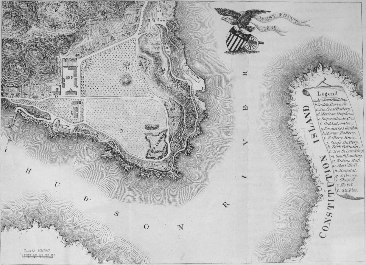 West Point, the property of the United States by purchase, possesses a primary interest from its military importance during the period of the American Revolution, and a secondary one from its being the seat of the National Military Academy. The creative hand of natural beauty—the romance of war—the distinguished career of those[6] who have gone forth from this locality in the defense of American Liberty, and the spectacle presented by those preparing for future public usefulness, have united to inspire the visitor with emotions unlike those excited at any place of popular resort within the limits of the United States.