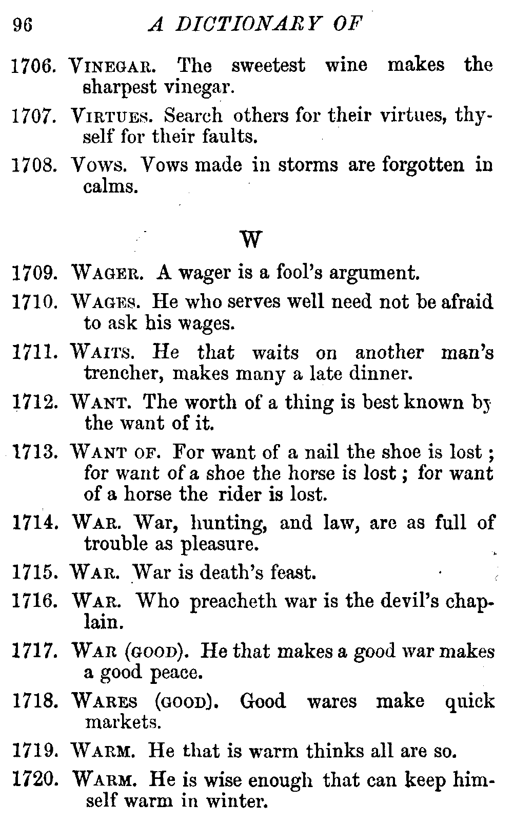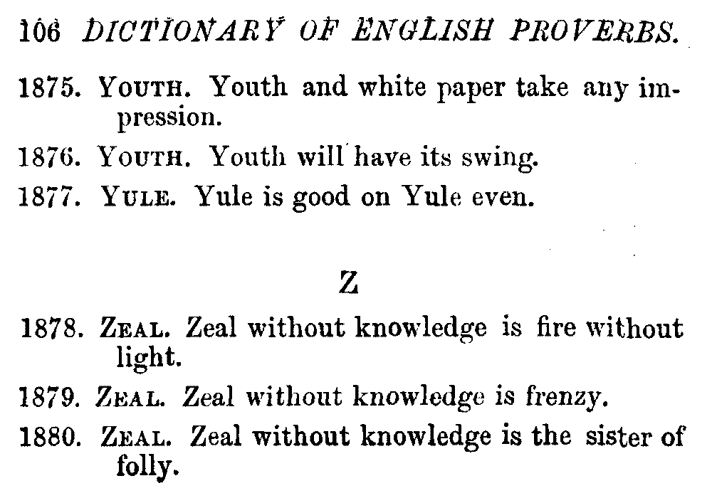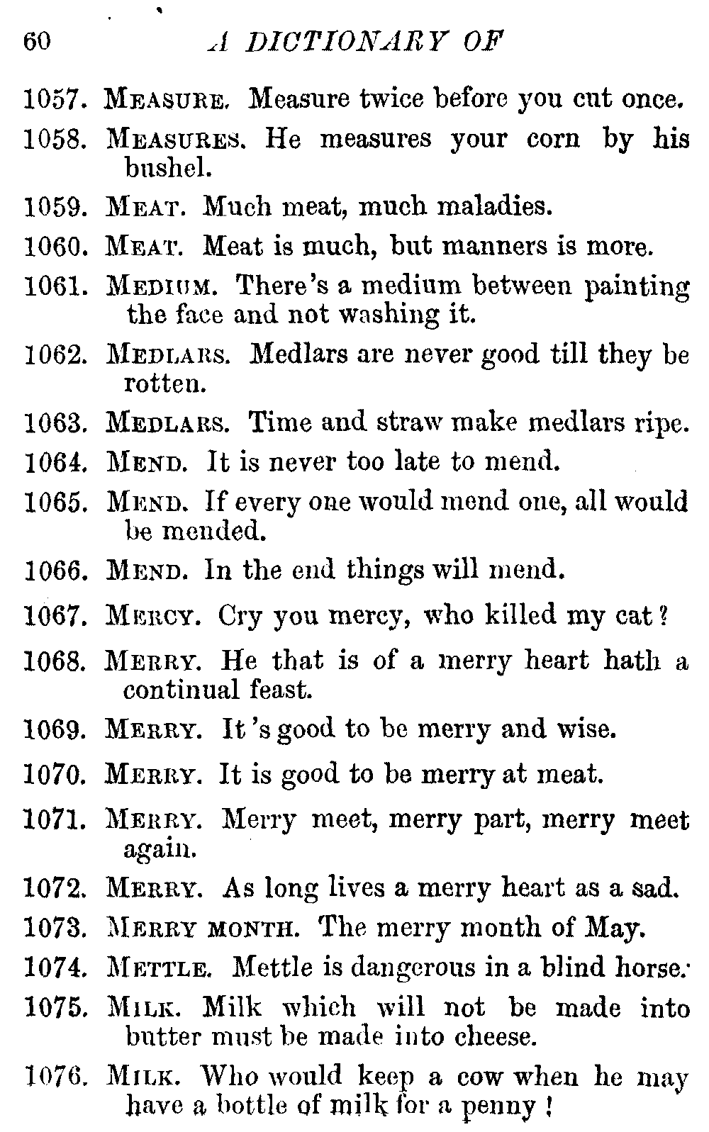It may be convenient to state that the Dictionary has been compiled principally from Ray's collection, first published in 1670. The remainder of the proverbs have been collected from ancient and modern literature; but some few of them will not be found in any other published collection.