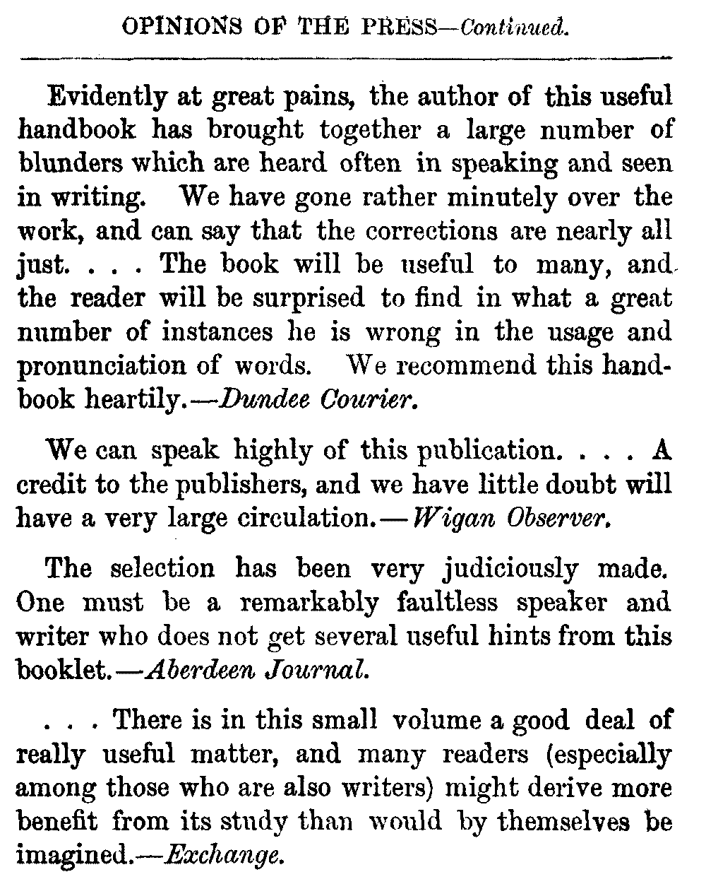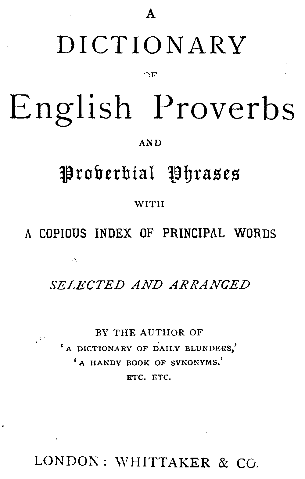 This series of "Handy Books" would hardly be complete without a collection of English Proverbs. Many books on the subject have been written, but it is hoped that this collection will, in some respects, be found to be an improvement on all its predecessors. Like The Dictionary of Daily Blunders, this Dictionary of English Proverbs has been framed so as to enable the reader to find what he wants without difficulty. The Dictionary itself is arranged according to the principal words, and there is also a Copious Index of additional principal words.