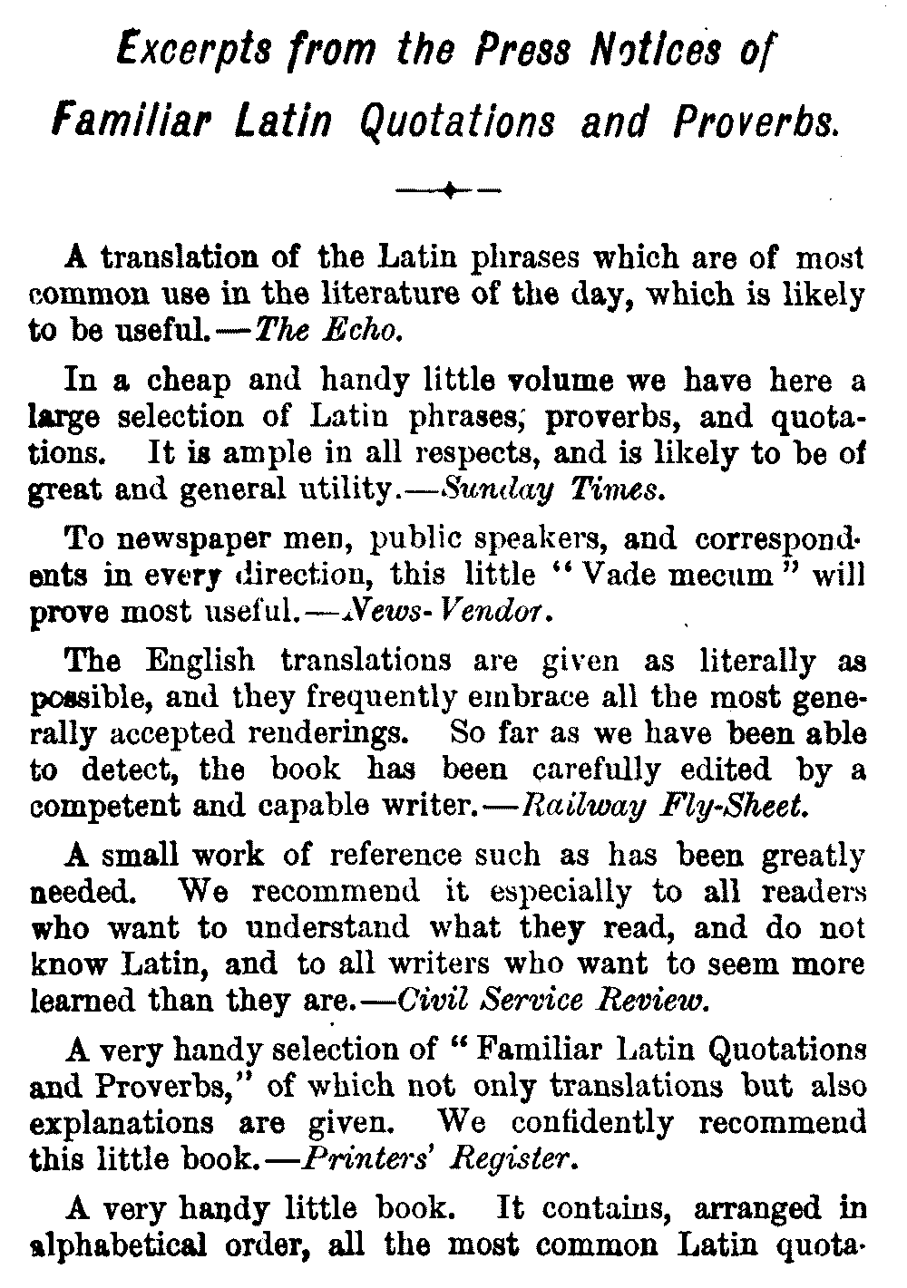 1. Familiar Latin Quotations & Proverbs.