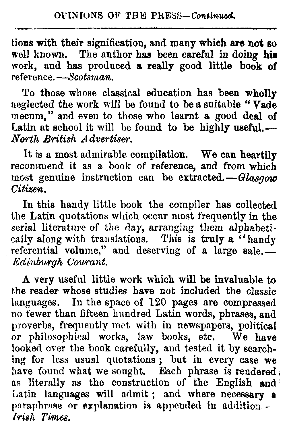 2. Reference Handbook of Quotations, English, French and Latin.