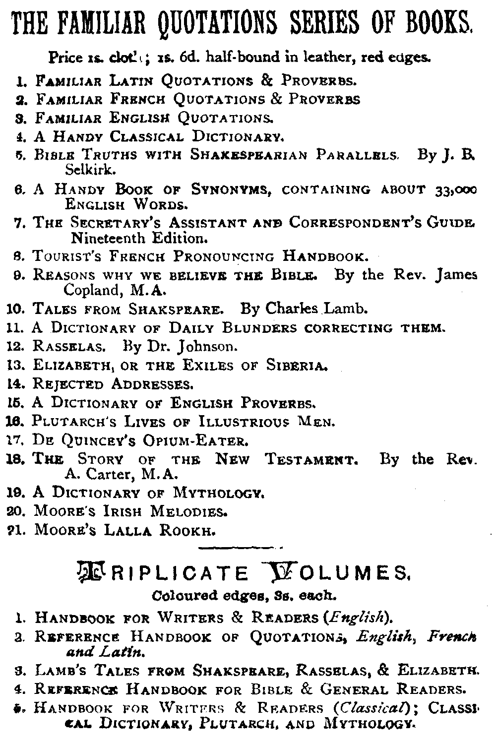THE FAMILIAR QUOTATIONS SERIES OF BOOKS.
