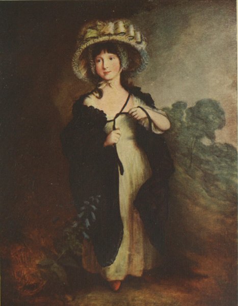 His father showed no opposition to his obvious vocation, and at the age of fourteen sent him to London to study painting. It is uncertain whether he went direct to the studio of Hayman, or whether he worked first for a while with Gravelot. Hayman was a portrait-painter of ability, a companion and to some extent an imitator of Hogarth; with him young Gainsborough learned the rudiments of his art, the use of brush and colours, and the principles of composition; but Hayman could teach him little more, and after staying with him four years he returned to Sudbury. It was not long after his return home that he got married, an event which is amusingly related by Cunningham:[Pg 29] "It happened, in one of his pictorial excursions amongst the woods of Suffolk, that he sat down to make a sketch of some fine trees, with sheep reposing below, and some wood-doves roosting above, when a young woman entered unexpectedly upon the scene, and was at once admitted into the landscape and the feelings of the artist. The name of this young lady was Margaret Burr; she was of Scottish extraction and in her sixteenth year, and to the charms of good sense and good looks she added a clear annuity of two hundred pounds. These are matters which no writer of romance would overlook, and were accordingly felt by a young, an ardent, and susceptible man: nor must I omit to tell that country rumour conferred other attractions—she was said to be the natural daughter of one of our exiled princes; nor was she when a wife and a mother desirous of having this circumstance forgotten. On an occasion of[Pg 30] household festivity, when her husband was high in fame, she vindicated some little ostentation in her dress by whispering to her niece, now Mrs. Lane, 'I have some right to this; for you know, my love, I am a prince's daughter.' Prince's daughter or not she was wooed and won by Gainsborough, and made him a kind, a prudent, and a submissive wife. The courtship was short. The young pair left Sudbury, leased a small house at a rent of six pounds a year in Ipswich, and making themselves happy in mutual love, conceived they were settled for life."