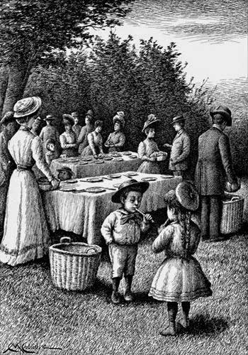 Little Ruth caught her father’s spirit as by infection. Every Fourth of July she arose as soon as the cannon began to boom and running out into the dewy or rainy garden, whichever it happened to be, she picked two great bunches of red and white flowers and arranged them in two blue vases and put one at the end of the table where mamma sat and the other at the end where papa sat in honor of the two birthdays.