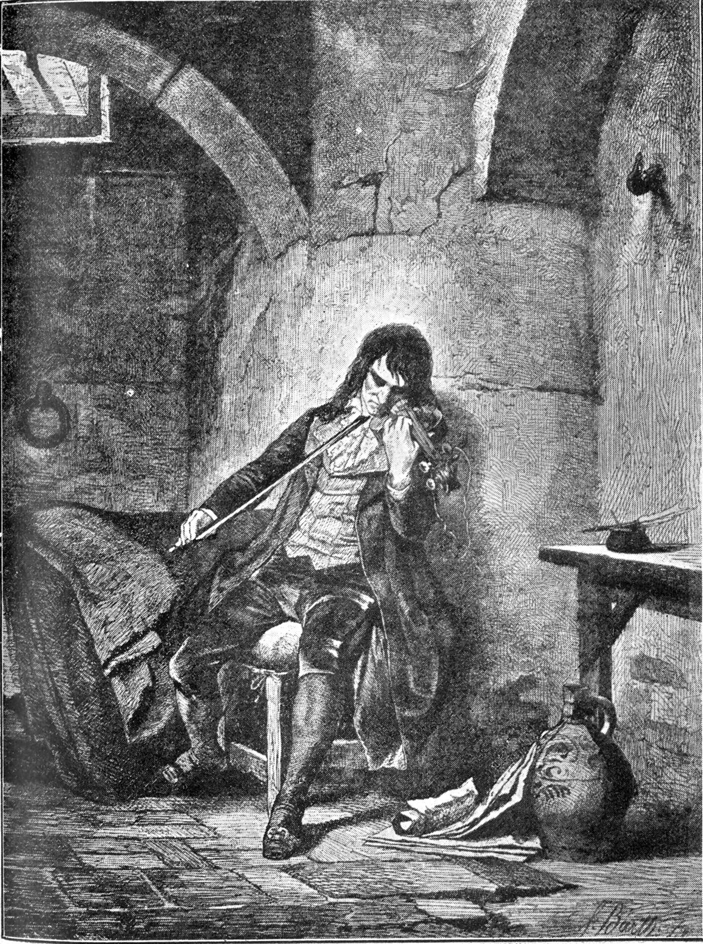 Arriving at Leghorn, where he was to give a concert, Paganini yielded to his weakness for the other kind of play and lost his money and his violin. He was in a dilemma indeed, but was fortunate in meeting with an enthusiastic musical amateur, M. Livron, a French merchant, the owner of a superb Guarnerius violin. This instrument M. Livron lent to the young artist, and attended the concert. When Paganini went to return the violin to its owner, M. Livron at once exclaimed, "I shall take care never to profane the strings your fingers have touched. It is to you now that my violin belongs." A noble benefactor, that M. Livron. The Guarnerius became Paganini's inseparable companion; he played upon it throughout all his tours, and its subsequent history will be duly related.