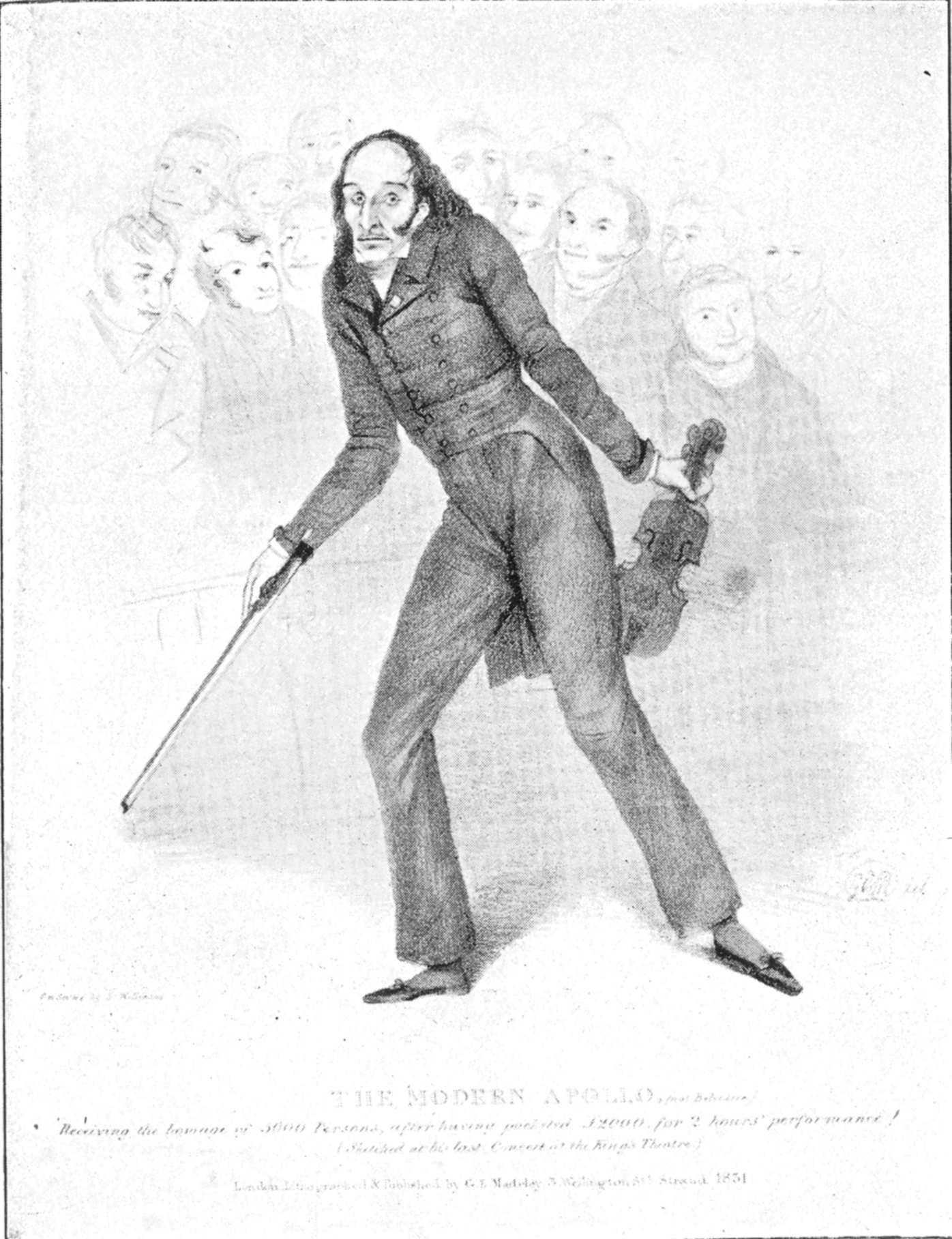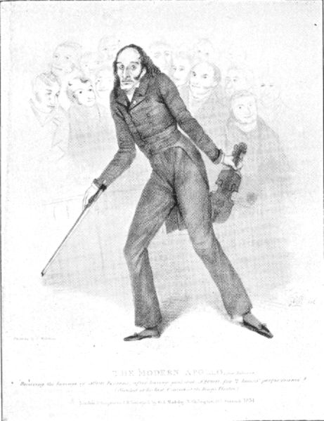 All the Paganinis mentioned above were eclipsed by the Paganini (pace Dr. Burney), the artist who stood alone, whose life was full of strange vicissitudes, who was worshipped and calumniated, who was applauded as perhaps never artist was before nor since, yet who was laughed at, hissed—only once—brought before the law-courts—threatened with imprisonment and mobbed within an ace of being lynched. As a child of four, Paganini narrowly escaped being buried alive; from youth up he was a constant sufferer from physical disorders; he had no real home till he was fifty-two; after death his remains were refused burial for five years; and when his body had rested in the grave for half a century it was exhumed, apparently in order that his features might once more be gazed upon. Truly, Paganini's story is a romance, a drama, a tragedy. We may not look upon his like again, nor is it desirable that we should; for his life conveys a moral that few can fail to discern.