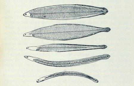 Die Entwicklung des Aales. (Nach Grassi u. Calandruiccio.)