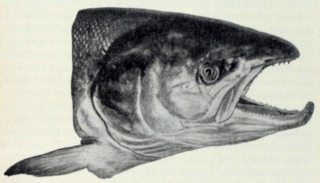 Ein gutes Gegenstück zum Aale in bezug auf Wanderung und Laichgeschäft ist der gleichfalls so hoch geschätzte Lachs (Sálmo sálar). [76] Wenn im zeitigen Frühjahr unsere Küsten eisfrei werden, erscheinen daselbst aus tieferen und mehr nördlich gelegenen Meeresteilen fortpflanzungsfähige Lachse in Trupps zu 30-40 und halten sich zunächst noch längere Zeit an den Strommündungen und in den Haffen, überhaupt möglichst im Brackwasser auf, um sich an den Übergang aus dem Salz- ins Süßwasser allmählich zu gewöhnen, da ein zu plötzlicher Wechsel ihrem Organismus nicht zuträglich ist, vielmehr oft ihren Tod zur Folge hat, wie auch durch Versuche nachgewiesen wurde. Nach dieser Übergangszeit aber steigen sie in den Flüssen selbst aufwärts als wohlgenährte, kraftstrotzende und lebensfrohe Tiere mit schiefergrauem Rücken, silberigen Seiten und weiß schimmerndem Bauch. In diesem Zustande heißen sie bei den Fischern Salme und werden besonders geschätzt, deshalb auch eifrig weggefangen. Manche bleiben auch ein ganzes Jahr im unteren Teil der Ströme, überspringen also eine Laichperiode und bekommen dann als sogenannte Winterlachse ein besonders zartes, schön rot gefärbtes Fleisch. Die große Mehrzahl aber wandert gleich weiter und legt nun unterwegs das Hochzeitskleid an, das bei ganz alten Milchnern in den herrlichsten Farben prangt: der Rücken wird tief schwarz mit Sammetglanz, die Flanken erscheinen übersät mit lose hingetupften, brennendroten, bisweilen zu Zickzacklinien verfließenden Flecken, der Bauch prangt in lebhaftem Orangerot, über die Seiten huschen grünliche Lichter, und die Flossen werden teilweise wunderbar chromgelb. Übrigens ändert die Gesamtfärbung bei allen lachsartigen Fischen ganz außerordentlich ab, wodurch ihre genaue Beschreibung sehr erschwert wird und dem Systematiker viele Verdrießlichkeiten erwachsen, zumal auch schon in freier Natur zahlreiche Verbastardierungen vorkommen, so daß bezüglich einer strengen Scheidung der einzelnen Arten auch heute noch vielfach Unklarheiten herrschen. Alter, Geschlecht, Jahreszeit, Ernährungsverhältnisse, Klima, Beschaffenheit des Wassers und des Untergrundes scheinen die dabei maßgebenden Faktoren zu sein. Selbst Skelett, Flossenstrahlen und Bezahnung, also Körperteile, die bei anderen Fischen als unverrückbar feststehend gelten, und deshalb sichere Artkennzeichen abgeben, sind mannigfachen Veränderungen unterworfen. Gleichzeitig mit dem Auftreten der prangenden Hochzeitsfarben verdickt sich beim männlichen Lachse die Oberkopf- und Nackenhaut schwartenartig, so daß die kleinen Schuppen völlig darin verschwinden, [77] die Schnauze streckt sich, und der Unterkiefer wächst sich zu einem eberzahnartig nach oben gebogenen Haken aus, der 6 cm lang werden und dann das Schließen des Maules unmöglich machen kann (Hakenlachs). Die bedeutsamsten Veränderungen gehen aber im Inneren des Körpers selbst vor, indem nach und nach die Geschlechtsorgane zu einer fabelhaften Mächtigkeit entwickelt werden. Machten sie vorher nur 1/2 Proz. des Körpergewichtes aus, so jetzt 25 Proz. und mehr! Diese einseitige Bereicherung erfolgt ganz auf Kosten der feisten Rumpf- und namentlich Seitenmuskulatur, die förmlich zusammenschrumpft, und so wird aus dem wohlgenährten Salm in kurzer Zeit ein zwar bunter, aber klapperdürrer Geselle. Während bisher die Reise nur langsam und zögernd, im gemächlichen Bummeltempo vor sich ging, ergreift nun die von reifen Geschlechtsprodukten strotzenden Fische ein schier unbändiger Wandertrieb, der sie alle Hindernisse überwinden und rücksichtslos das Leben aufs Spiel setzen läßt, um das Ziel ihrer Sehnsucht baldmöglichst zu erreichen. Zur leichteren Überwindung des Wasserwiderstandes ordnen sie sich wie Kraniche oder Wildgänse zu keilförmigem Zuge, wobei das älteste und stärkste Exemplar die Spitze nimmt. Stellt sich ein Wehr oder Wasserfall entgegen, so schwimmen die Fische bis unmittelbar an seinen Fuß heran, stützen sich mit der Schwanzflosse auf einen Stein und schnellen sich dann durch einen gewaltigen Muskeldruck [78] mit halbmondförmig gekrümmtem Körper aus dem Wasser heraus und über das Hindernis hinweg, wobei sie Sprünge von 3-4 m Höhe und 5-6 m Weite im Bogen vollführen. Mißlingt der erste, so wird er unzählige Male wiederholt, bis das Wagnis endlich doch glückt oder der Lachs mit zerschundenem Leibe sterbend auf dem trockenen Felsen liegt. Nur sehr bedeutende Wasserfälle, wie der Schaffhausener, können vom Lachse nicht überwunden werden, der deshalb auch dem Bodensee fehlt. Das Allermerkwürdigste bei dieser harten und entbehrungsreichen Brautfahrt ist aber der Umstand, daß die Lachse während ihrer ganzen, sich über 4-6, ja selbst 10-12 Monate erstreckenden Dauer anscheinend keinerlei Nahrung zu sich nehmen, sich also förmlich als Hungerkünstler produzieren. Wenigstens hat man in ihrem Leibe noch niemals Nahrungsreste irgendwelcher Art gefunden, vielmehr die Beobachtung gemacht, daß Magen und Darm eintrocknen, keine Ausscheidungen mehr liefern und selbst das Gebiß durch Nichtgebrauch verkümmert. Und daß Lachse tatsächlich ein volles Jahr zu fasten vermögen, beweist ein von Paton 12 Monate lang gefangen gehaltenes, nur 5pfündiges Exemplar, das in dieser Zeit niemals gefüttert, wohl aber zweimal zum Befruchten von Rogen abgestrichen wurde. Unser Wanderfisch ohnegleichen, der sich allen Hindernissen zum Trotz im Kampf gegen Wehre, Schleusen und Stromschnellen den Weg vom Meer zum Fels bahnt, ist also auch ein Hungerkünstler, der Succi und Genossen weit übertrifft. Es handelt sich hier um eines der größten und interessantesten Fastenexperimente, das die Physiologie kennt. Bis in die kleinsten Gebirgsbäche hinauf wird die Reise ausgedehnt, und nicht selten erreicht der Lachs dabei Meereshöhen von 1000 m und mehr. Wo reines, sauerstoffreiches Wasser flach über kiesigen Untergrund strömt, da erscheint den weitgereisten Wandere