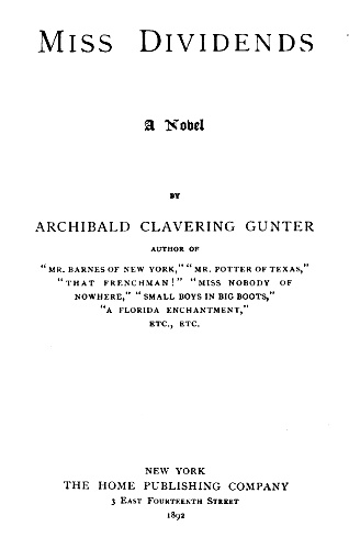 The Project Gutenberg EBook of Miss Dividends, by Archibald Clavering Gunter