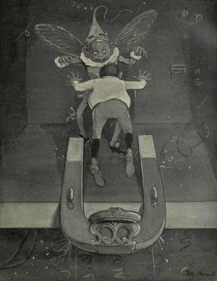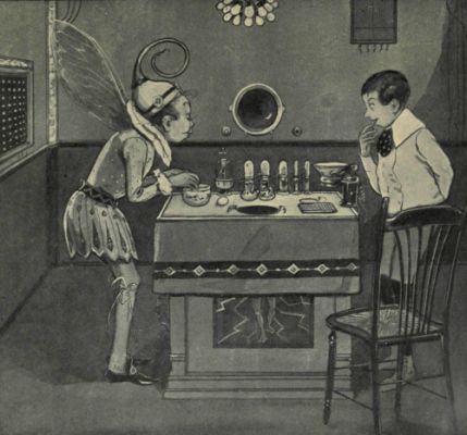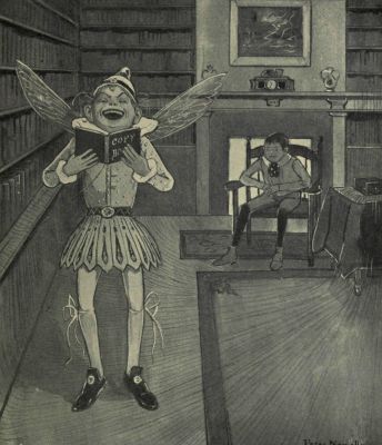 A few nights ago, however, Jimmieboy's interest in his wheel was aroused once more, and to-day it is greater than ever, and it all came about in this way. His father and mother had gone out to make some calls and the youngster was spending a few minutes of solitude over a very fine fairy book that had recently been sent to him. While he was gazing at a magnificent picture of Jack slaying two giants with his left hand and throttling a dragon with his right, there came a sudden tinkling of a bell.