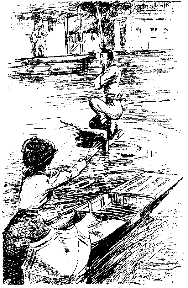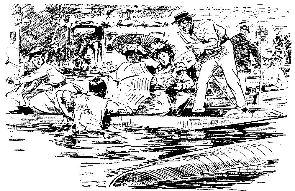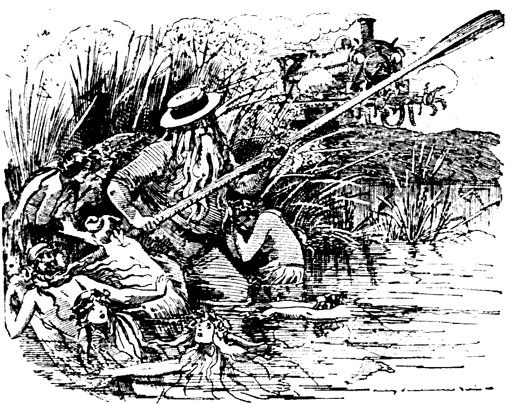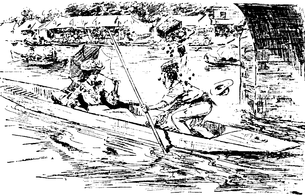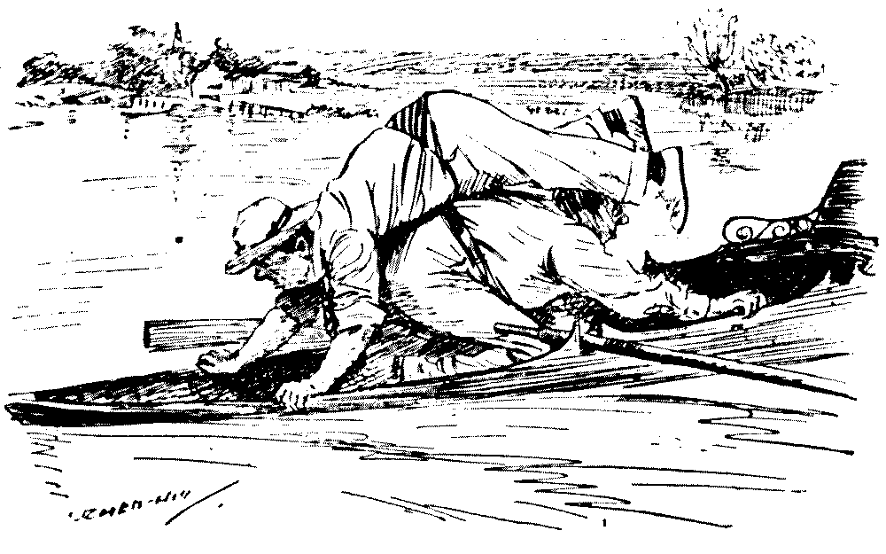 Binks, who is the kindest creature possible, has undertaken to fasten up the boat and bring along the siphons. Unfortunately both sculls have gone, and his friends are out of hearing.
