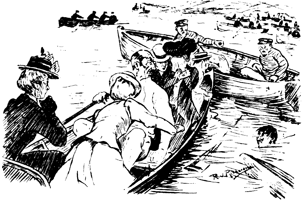 River and sea, with their teeming summer life as we know them in Great Britain and around our coasts, have yielded a rich supply of subjects for the pens and pencils of Mr. Punch's merry men. In Stevenson's famous story of "The Merry Men," it is the cruel side of the sea that is symbolised under that ironic description; but there is no touch of gall, no sinister undertone, in the mirth of Mr. Punch's "merry men."