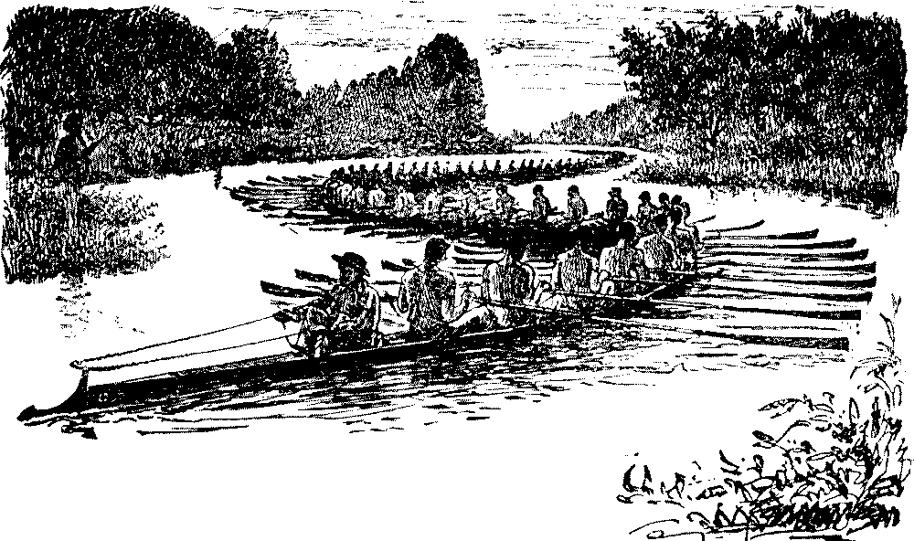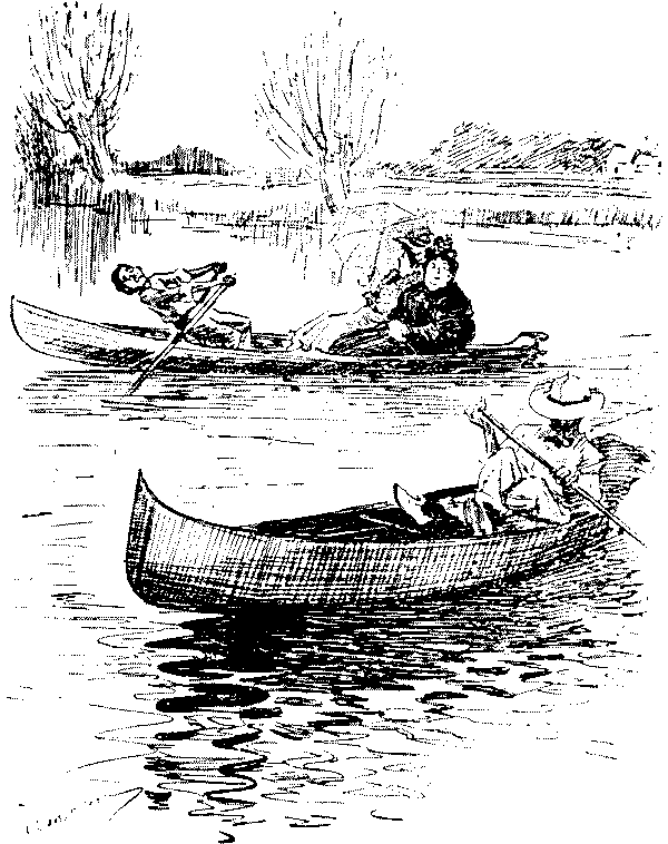 I have been here for a week, but have, as yet, not been fortunate enough to see any crews.[Pg 172] Indeed, I doubt if there are any here. A good many maniacs disport themselves every day in rickety things which look something like gigantic needles, and other people have been riding along the bank, and, very naturally, abusing them loudly for their foolhardy recklessness. But no amount of abuse causes them to desist. I have puzzled my brains to know what it all means, but I confess I can't make it out. I fancy I know a boat when I see one, and of course these ridiculous affairs can't be boats.