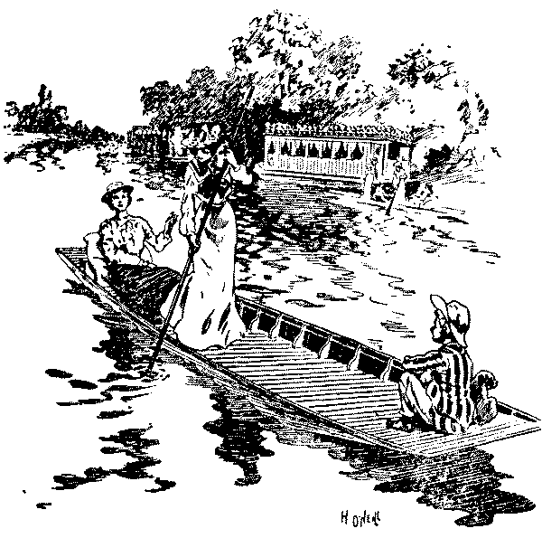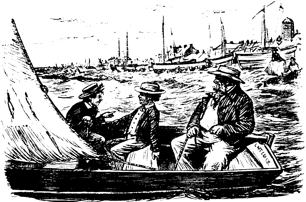 [Pg 8]Wy, we see a swell boat with three ladies, sech rippers, in crewel and buff,