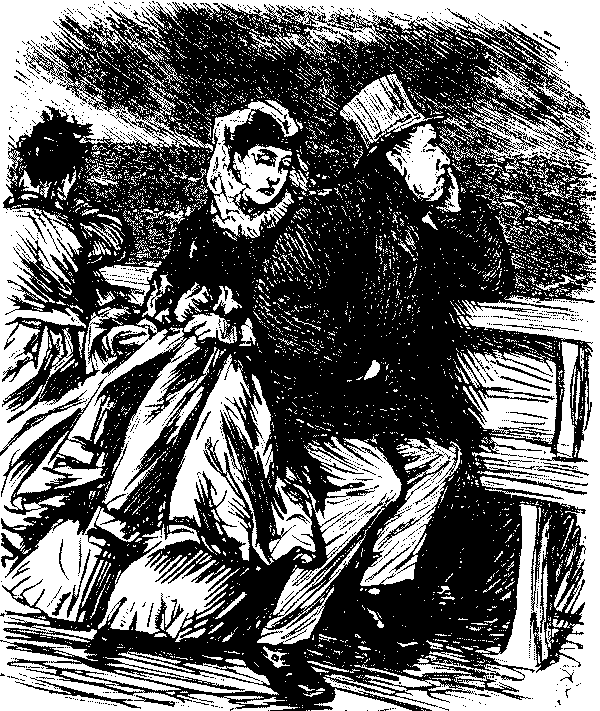 Mrs. Fleshpottle. "Well, I must say, Mrs. Gumblewag, I like something substantial for my dinner. Nothing, I think, can be better than some pea-soup to begin with; then a biled leg of mutton with plenty of fat, with turnips and caper sauce; then some tripe and onions, and one or two nice suet dumplings as a finish!"